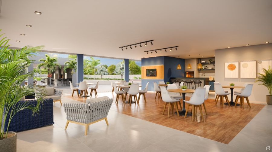 * Espaço gourmet com churrasqueira e salão de festas.